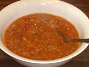 If you do not have access to buy the “Legumes Plus” brand lentil soup try this alternative: boil 1/2 green or red lentils in 1 cup water until al dente. Add 1 tsp garlic salt, 1/2 tsp onion powder, black pepper, and pinches of paprika, chili powder, and oregano. If you don’t have access to the tomato soup I recommend, try a brand you can find.
